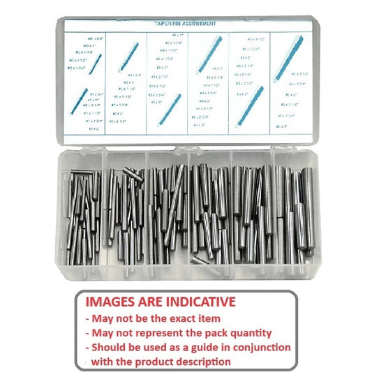 Part Number:  AST-TAP-0-5-0100 Small Parts Assortment Kits - Selection Taper Pins 100 - No.0 to No.5, 3/4 to 2 inches long - Steel Out of Stock | Backorder Now | Orders can be expected around Mon, Nov 24, 2025 Regular price