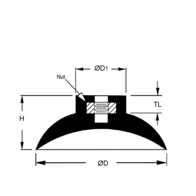 Suction Cups - 79.4x41.3 mm - Hollow Neck with 1/4-20 Insert - EPDM rubber Suction Cup