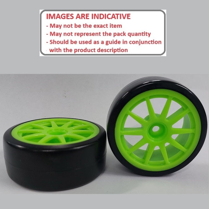 RC Car Wheels Hobby - Rim Colour Green 10 Spoke - Black Tenth Scale - Plastic Wheel