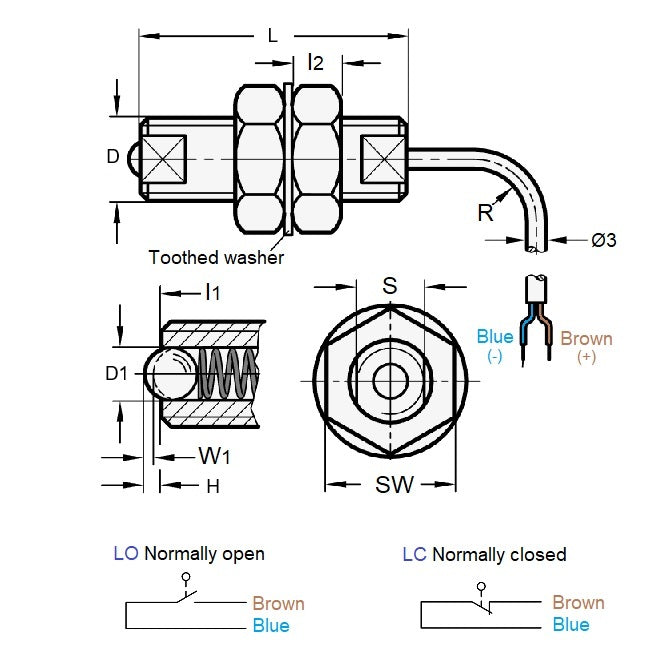 Ball Threaded Plungers - M8 - 8x1.25mm - 30 mm - 8 N With Limit Switch - Steel Nickel Plated Plunger
